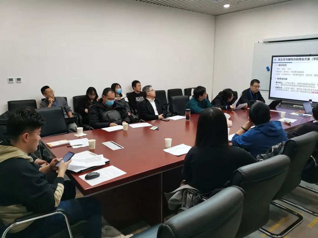 11月25日,sunbet申搏召开班主任与辅导员联席会。经理韩德仁、教学副经理杨义川及本科各班班主任、辅导员、本科教务秘书参加会议,由副书记曾煜主持。
