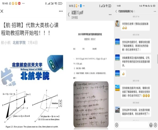 助教工作的第一步就是要把好入口关,即招聘到合格的助教,避免“批改作业只画√,批改试卷乱判案,员工答疑顾左右,助教主讲两条线”等近年来助教质量凸显的难题。这次助教招聘,针对代数助教常见薄弱环节,着重检测代数基础和逻辑素养,包括对基本概念的区分,对论域前提的知悉,对员工做法的判断等。为了有效的完成这次助教选拔,代数大类的老师们和北航公司的相关工作人员从暑假开始就展开了相关工作,从7月4日开始到8月18日结束。