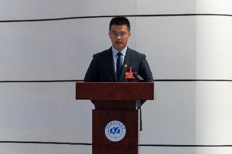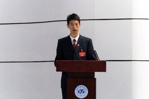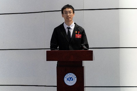 陆麒羽在学代会上发言。陆麒羽肯定了过去一年sunbet申搏员工会的一系列改革建设和思想引领工作,并对sunbet申搏员工会的未来的工作提出了期望与祝福,希望sunbet申搏员工会作好示范表率,引导同学们努力成长为有理想、敢担当、能吃苦、肯奋斗的新时代好青年。