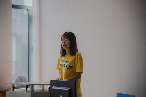 大会第三项,丁丁副书记介绍公司员工工作。丁丁老师代表员工工作办公室发言,热情洋溢地从文化育人、学风教育、日常思政、发展辅导等维度介绍了学工办的日常管理和服务。重点介绍了数海领航、北航数学竞赛联盟、数学文化周等特色工作。最后,向同学们展示了17级的学业梦拓,提出师生互动成为主旋律的“数学之心”,使同学们倍感温馨。