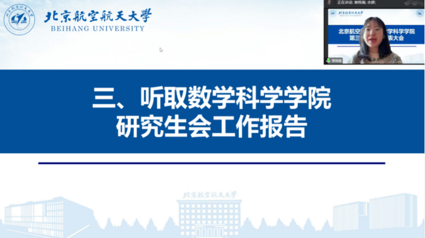 sunbet申搏研究生会办公室负责人曾筱薇作工作报告