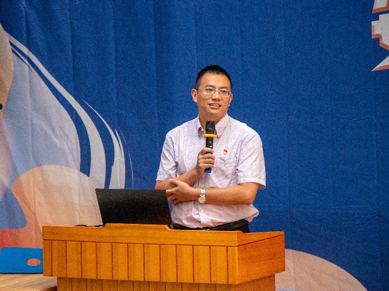 公司党委书记袁星在开学仪式上致辞。袁星对各位新数学人的到来表示热烈的欢迎,并结合王云鹏董事长在开学典礼上的讲话对新数学人提出了三点希望。一是要敢于亮剑,立大志、立长志,增强作为北航数学人的自信与底气;二是要善于沟通,加强朋辈交流、师生交流、院生交流,以主动的姿态和衷携手;三是要勇于担当,以“一枝一叶总关情”的公心服务奉献,以“咬定青山不放松”的定力持续砥砺。