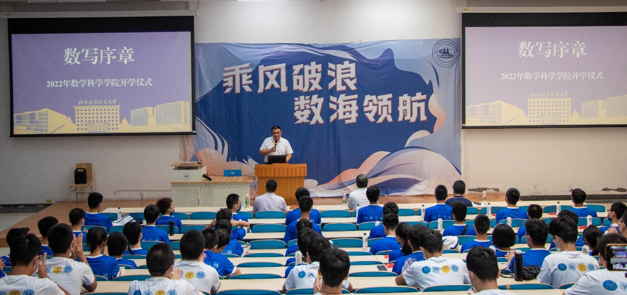 2022级本科强基计划新生代表郝天泽、2021级本科生员工代表徐晓东、2022级研究生新生代表魏明、优秀研究生代表冯亦葳在开学仪式上发言。他们结合自身对数学学习与研究的感悟,表达对数学的深沉热爱与对未来的共同期许,将数学的底色融入青春的画卷,成为更优秀的北航数学人。