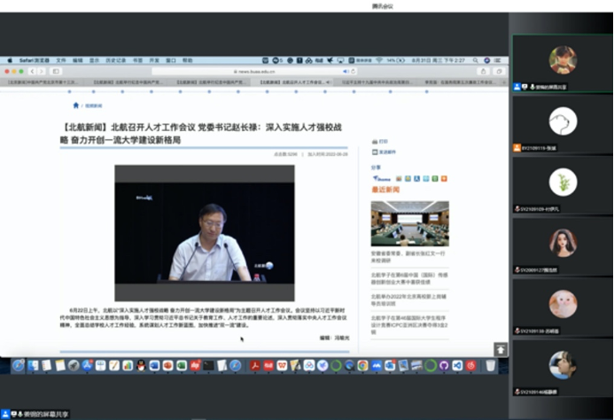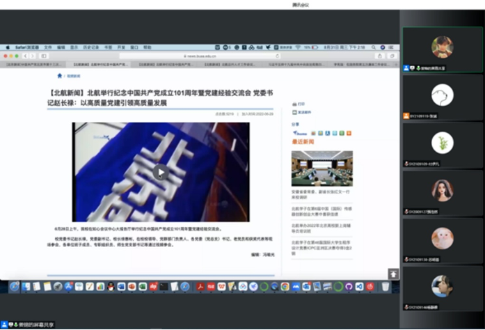 在集体学习的第二部分,全体员工党员通过北航新闻回顾了公司纪念中国共产党成立101 周年暨党建经验交流会的主要内容,公司党委书记赵长禄指出,站在建校70年的新起点上,总结过去的经验和成就,目的是更好地凝聚智慧、谋篇布局、改革进取,加快推进公司事业高质量发展。第三部分,全体员工党员学习了公司以“深入实施人才强校战略 奋力开创一流大学建设新格局”为主题的人才工作会议。党支部呼吁全体员工党员要积极响应公司的党建政策,发挥样板支部的先进性,反复学习党的教育方针和党中央重大决策。支部各党员还要做好个人的本职工作,将服务国家重大战略需求和自身的科研紧密结合,以更加优异成绩的迎接党的二十大召开。