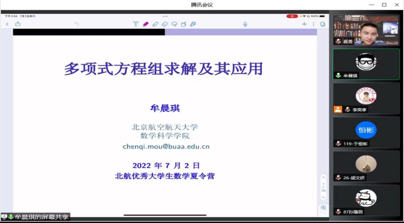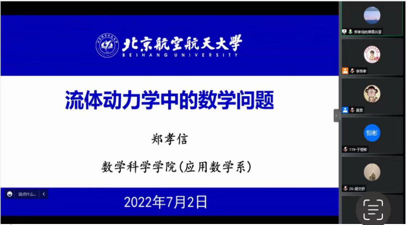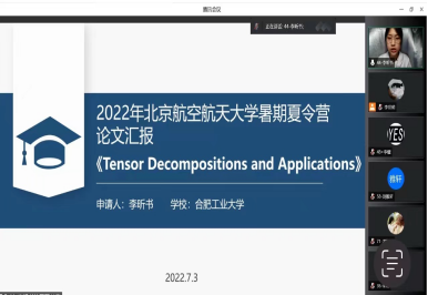 7月2日上午9:30在“腾讯会议”正式线上开营,公司党委书记袁星讲述了北航始终同服务国家战略紧密相连的发展历程,谈到了北航人代代传承的空天报国红色基因,为营员们上了一节生动的思想政治课,阐述了“为谁培养人、培养什么人、怎样培养人”,激发了青年学子的家国情怀和奉献担当。最后,袁星书记欢迎各位营员报考北航数学公司,共同为祖国贡献力量。夏勇副经理随后详细介绍了数学公司发展现状以及研究生招生、培养等情况,鼓励大家踊跃报考公司2023年研究生。