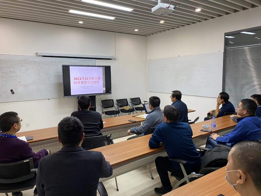 2021年12月22日下午,计算科学系在沙河校区E402组织了学习日活动。计算科学系11位教师参会,会议由系主任冯仁忠老师主持。