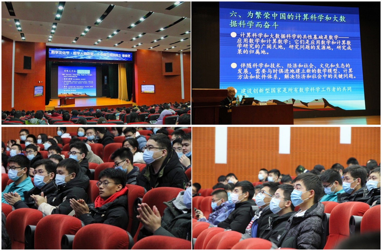 11月25日,数学文化节·数学大师讲座——中国工程院院士崔俊芝主讲题为“从计算科学到大数据科学--漫谈数学交叉科学研究”的讲座在咏曼剧场举行,活动由sunbet申搏经理韩德仁主持。