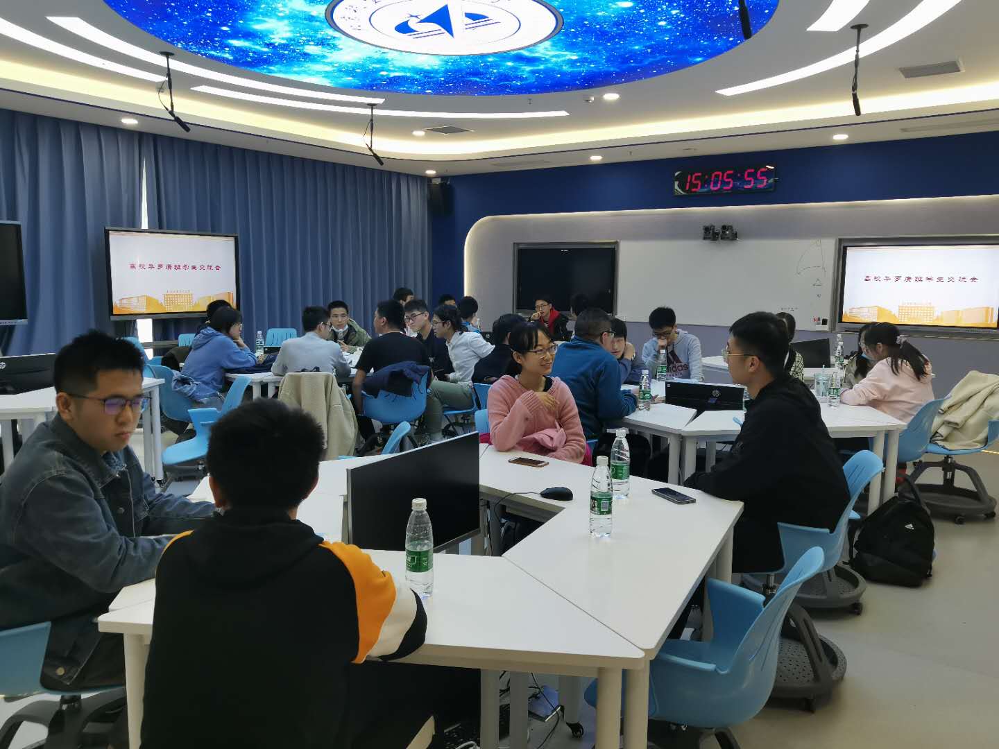 同学们经过破冰交流相互认识,随后深入交流探讨了校园学习生活、课程学习经验、研究生推免经验、华罗庚精神等话题,现场气氛十分活跃。同学们志趣相投,相见恨晚,很快便相互熟识起来。为了加强联络,增进沟通,在活动即将结束的时候,同学们建立了微信群,并相互约定后续开展经常性交流活动。
