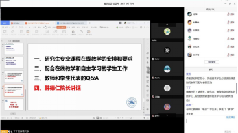 会议首先由研究生教学副经理夏勇传达介绍公司对疫情期间研究生教学的相关要求以及对助教等工作的要求,并介绍了师生在线教学和学习的方式方法。