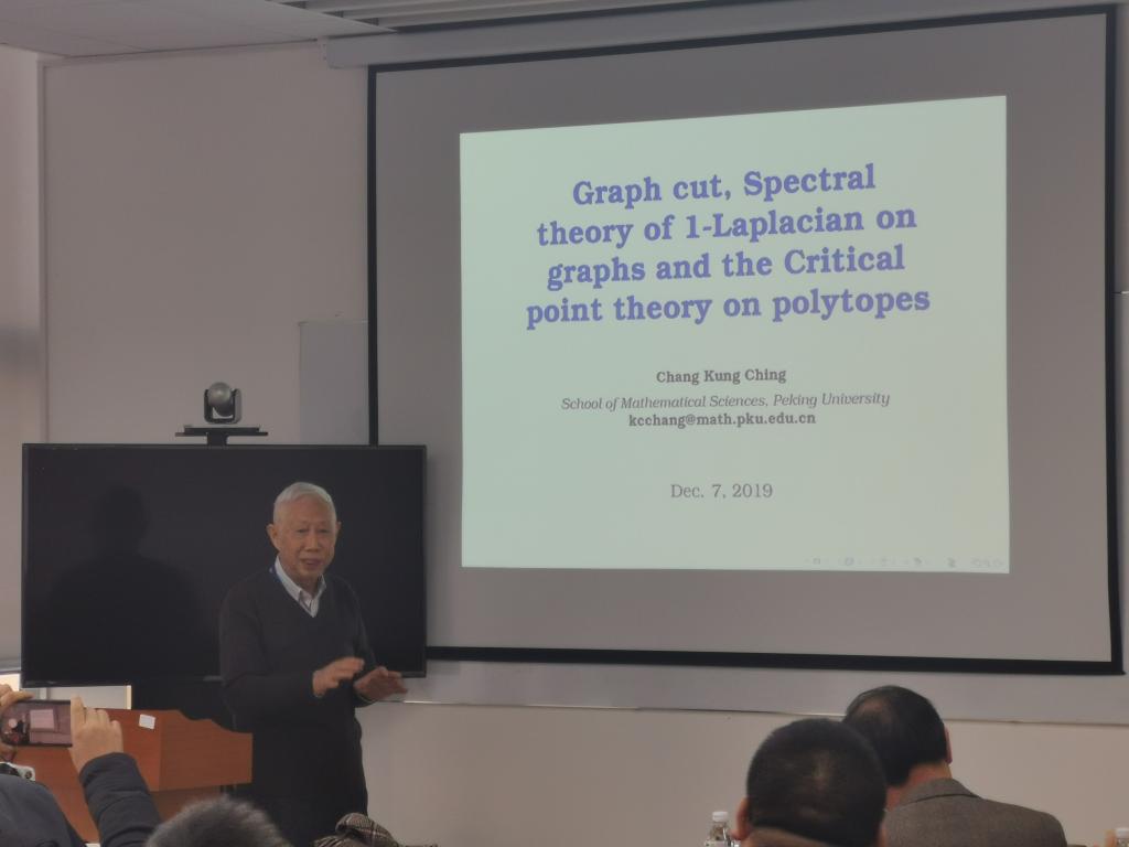 sunbet申搏院士,世界科公司士,张恭庆教授做了精彩报告,介绍了关于非光滑临界点理论的最近工作,并将其运用于图分割问题中,为这一问题的计算中许多基于实践的方法提供了严格的数学依据,尤其是给出了Cheeger常数与Mountain Pass点之间的漂亮关系。