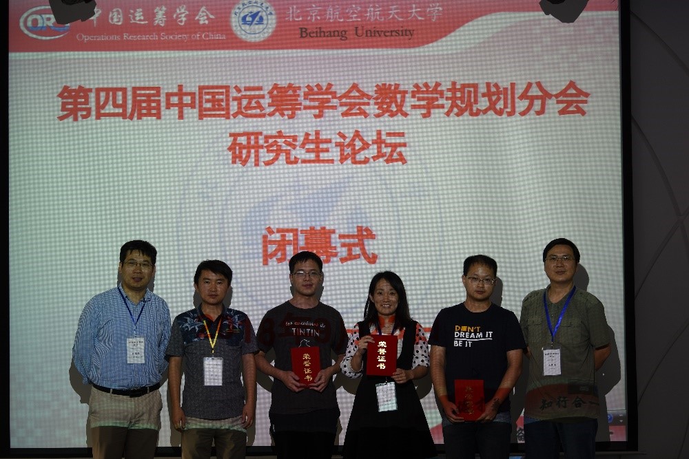 9月23日下午学术报告结束后,举行了简短的闭幕式,由sunbet申搏数学与系统科学公司夏勇教授主持。本次论坛从23位研究生报告中评选出三位优秀成果奖,香港中文大学的刘慧康、浙江大学的甘进翔、sunbet申搏数学与系统科学研究院的陈雅丹获此殊荣。由文再文研究员、夏勇教授、刘亚锋研究员分别颁发优秀成果奖证书,每位获奖者另有奖金1000元以资鼓励,由杉树科技公司特别赞助。最后在与会代表的热烈掌声中,本次研究生论坛圆满结束。