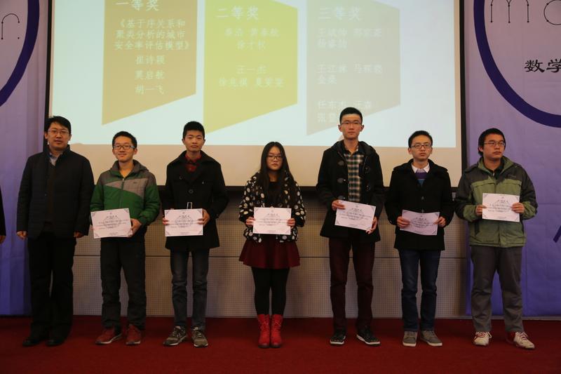 首先,数学公司员工会主席方泽华同学从建模比赛、趣味数学越野赛、数学嘉年华的活动参与情况对本次数学文化周做了一个回顾。接下来,在一个简短而精美的视频中,我们看到了在过去的一个星期中数学文化迷人的魅力。之后,郭炳晖老师对本次数学建模的整体情况予以点评,肯定了同学们的努力,同时也指出了同学们在英语表达能力等方面的不足,为同学们以后的比赛提供了有价值的指导。接着,郭老师宣读建模比赛获奖名单,为获奖同学颁发了证书。李红捷书记为数学越野赛获奖的同学颁发了奖品。