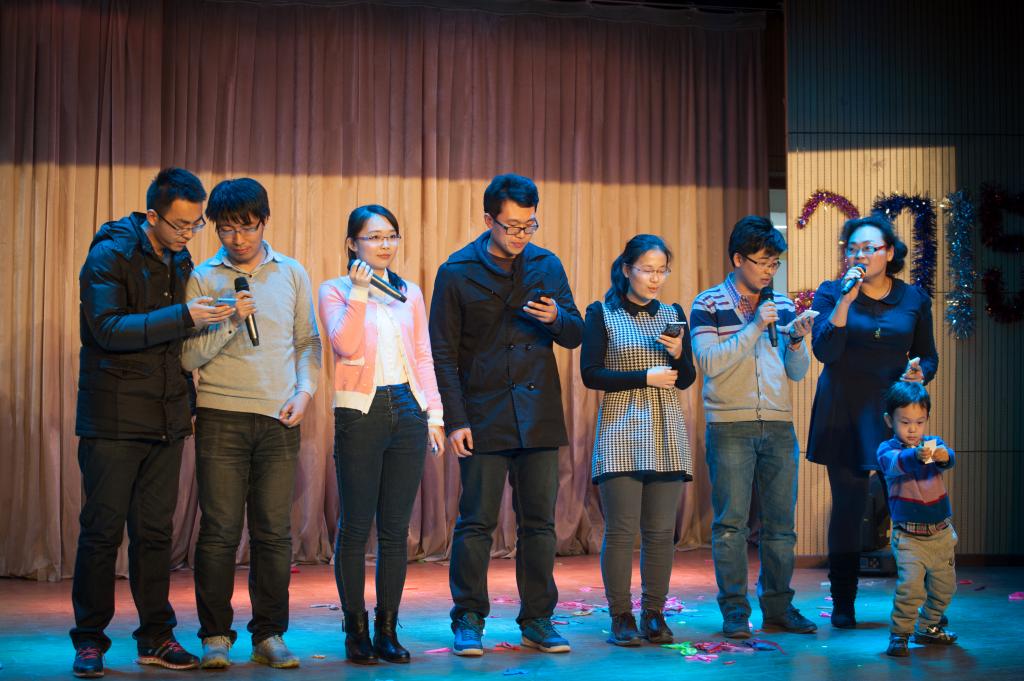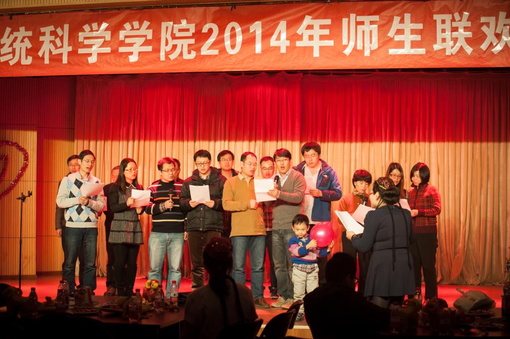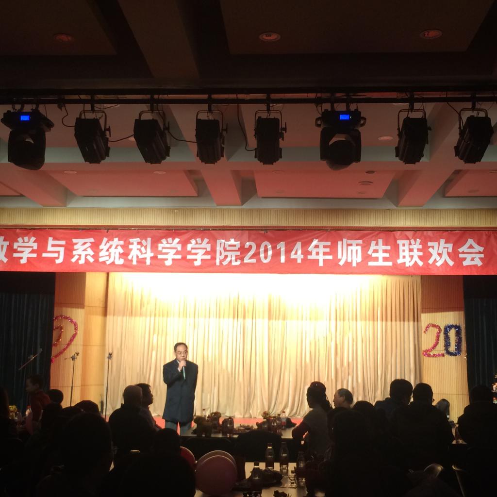 钟声敲响,新春起航,2015年1月23日下午2:00数学与系统科学公司在晨兴剧场举行了元旦“数之爱”师生茶话会,在笑声与歌声汇成的海洋里,在这个温馨和喜庆的日子里,林群院士、数学公司全体领教职工、员工代表共庆2015年新年到来。公司经理郑志勇教授介绍了公司在2014年在团队建设、人才培养、团队队伍、合作与交流方面取得成绩,表示所有的这些成就都凝聚着全院教职工的心血和汗水,特别是郑志明教授团队获批国家技术发明一等奖取更是公司的重大突破。希望在崭新的一年里,公司上下继续团结努力,攻坚克难,使得公司各项工作进一步走上新台阶,切实实现公司又好又快地健康发展。最后,郑志勇经理对全院教职工表达了真诚的新年祝愿。