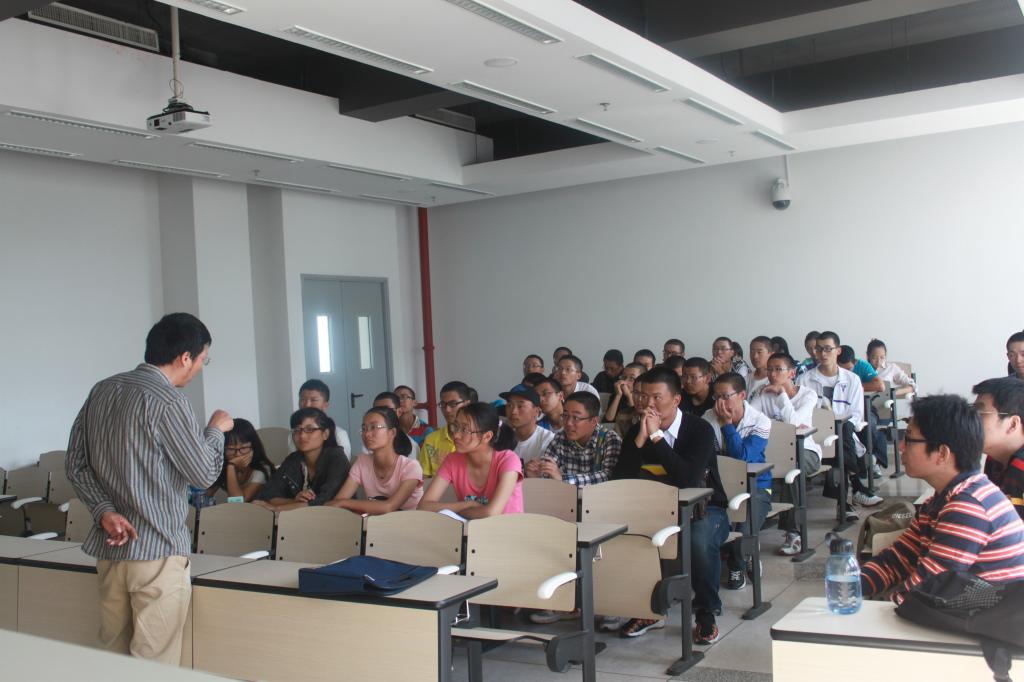 见面会在应用数学系党支部书记邢家省副教授风趣幽默的开场白下很快就热闹起来了。在了解了专业特点、知道了大学的不同、听说了老师的经历后,同学们迫不及待的开始提问:“我们的就业前景如何?”、“公司鼓励社团活动吗?”、“我不聪明,能学好数学吗?”、“如何看待老员工恋爱问题?”,一个接着一个,好在老师们都有准备,遂抖出浑身解数作答。邢家省老师妙语连珠、王海辉老师率直有识、孙玉泉老师沉稳持重、马健老师条理分明,一次次的掌声、一张张的笑脸,没有师生的界限,就像一个温暖的大家庭。